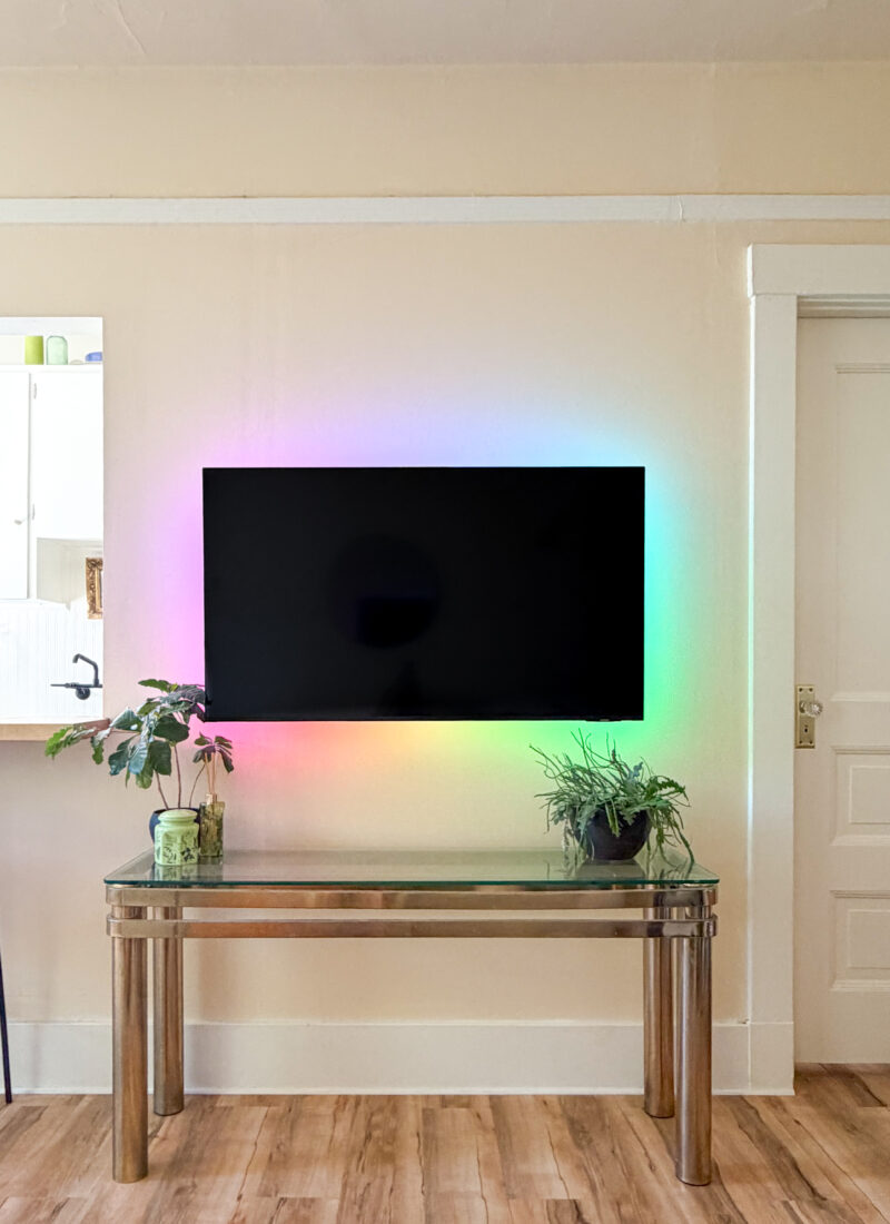 I recently added LED backlighting to my TV, and it’s one of those small upgrades that makes a big difference. It instantly changed the feel of the room—adding warmth, a softer glow, and a more finished look to the space. If your home leans natural like mine, this is an easy way to layer in